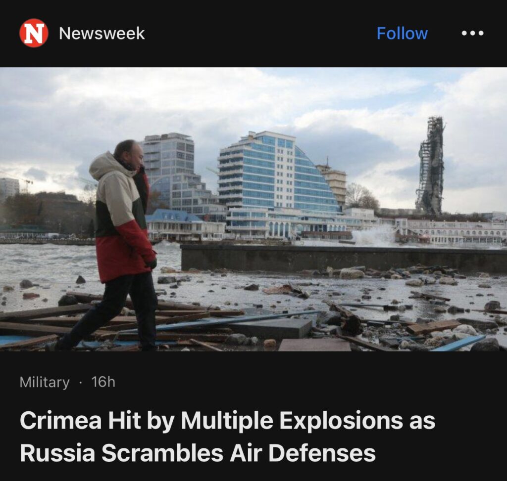 2。据Newsweek报道,克里米亚发生了一系列爆炸,俄罗斯称这是乌克兰发动的“恐怖”袭击。亲乌克兰的东欧新闻媒体 Nexta 在 Telegram 上发帖称,周四下午塞瓦斯托波尔发生了“约 10 起爆炸”。