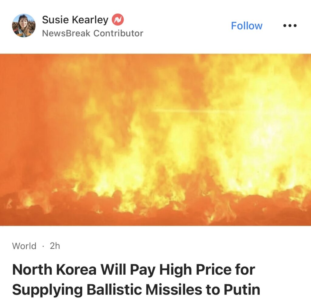 12。据NewsBreak 报道,英国外交部表示,朝鲜将为向总统弗拉基米尔·普京提供弹道导弹而付出高昂代价。此举被视为普京在战场上损失惨重、弹药耗尽的绝望迹象。