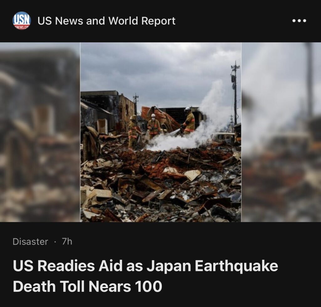 10。日本轮岛路透社报道,美国周五表示,正在准备向日本遭受地震破坏的地区,提供军事后勤支持和援助。这场地震造成 94 人死亡,迫使约 33,000 人离开家园,并导致 200 多人下落不明为了。