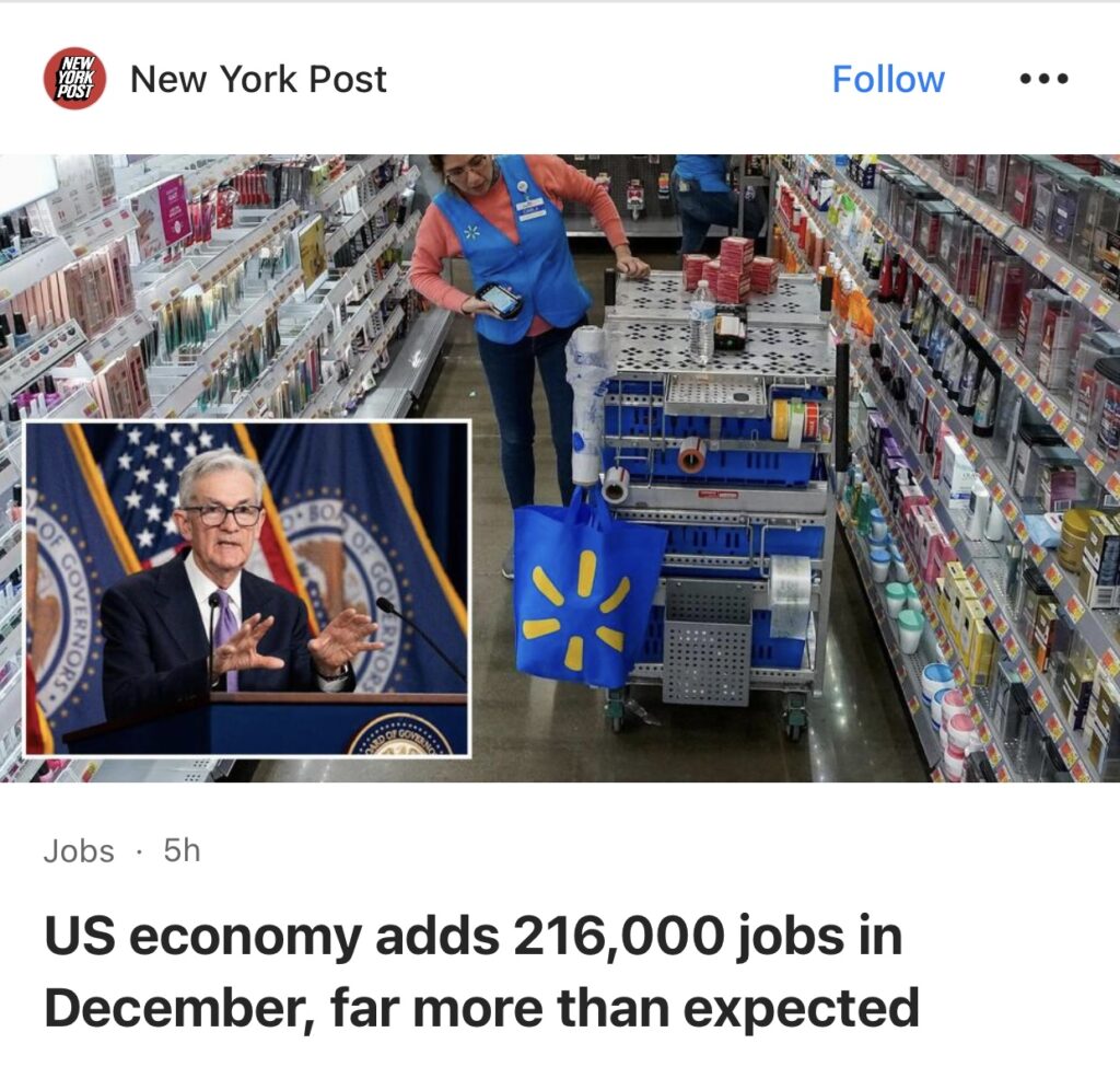 14。据New York Post 报道,12 月份美国雇主增加了216,000 个就业岗位,增幅惊人,引发人们对美联储今年何时开始降息的怀疑。根据 Refinitiv 的数据,上个月的就业增长超过了 11 月份预期的 199,000 人,也远高于经济学家预期的 170,000 人。