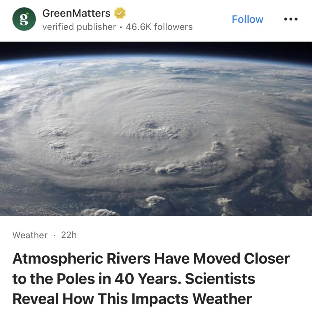 13。据GreenMatters 报道,40 年来,大气河流向两极靠拢。科学家揭示了这如何影响天气。