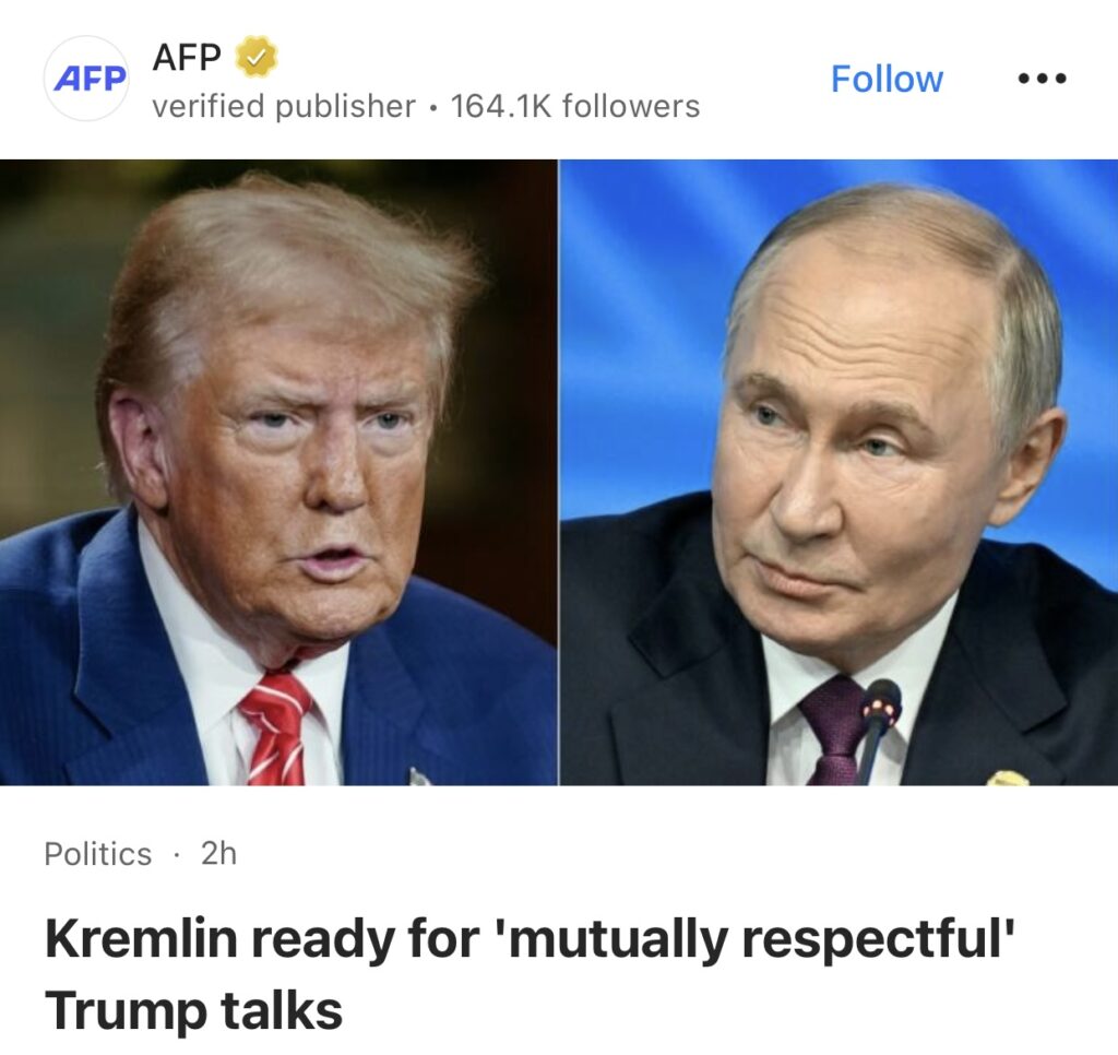 14。据AFP报道,克里姆林宫周四表示,美国总统特朗普呼吁俄罗斯结束对乌克兰的军事攻势,这没有什么新意,但莫斯科已准备好与他进行“相互尊重”的对话。