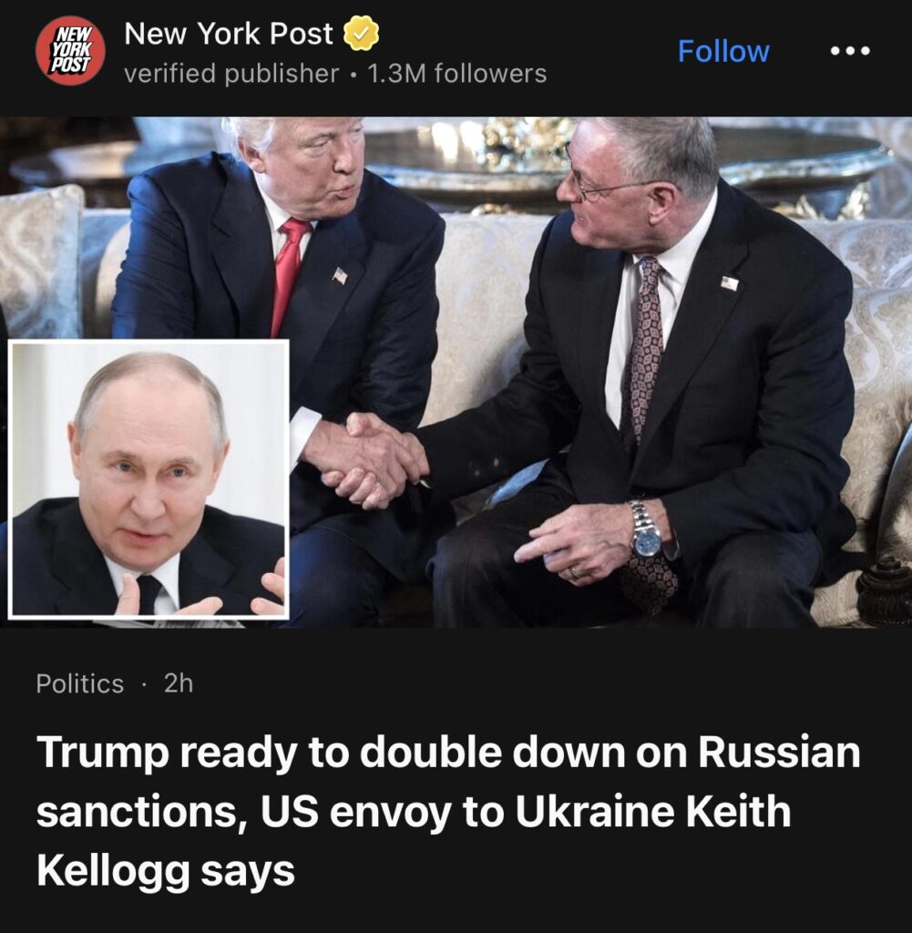 10。华盛顿——特朗普总统准备加大对俄罗斯的制裁力度,以结束对乌克兰的战争。他的冲突问题特使、退休将军基思·凯洛格本周独家告诉《华盛顿邮报》,但他知道基辅和莫斯科都必须做出让步,以结束欧洲最大国家发生的“工业规模”杀戮。