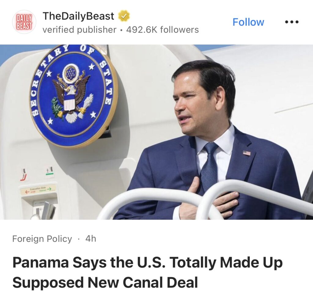2。据TheDailyBeast报道,美国有线电视新闻网报道,巴拿马政府迅速驳回了美国国务院关于美国政府船只不再需要支付通过巴拿马运河费用的说法。巴拿马运河管理局在一份声明中明确表示,并未对通行费进行任何调整,这与华盛顿宣布的政策变化将每年为美国节省数百万美元的说法直接矛盾。