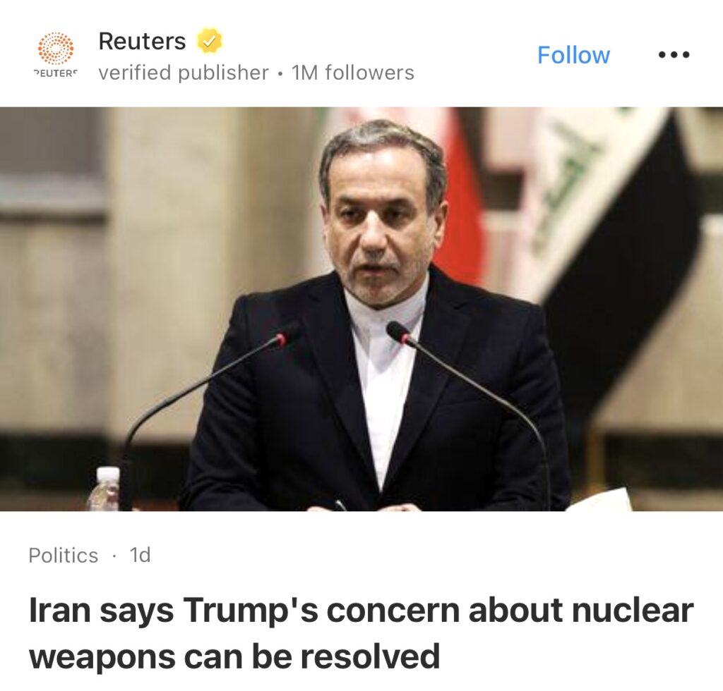 5。迪拜(路透社) – 伊朗外交部长阿巴斯·阿拉奇周三表示,美国对伊朗发展核武器的担忧并不是一个复杂的问题,鉴于德黑兰反对大规模杀伤性武器,美国可以解决这一问题。