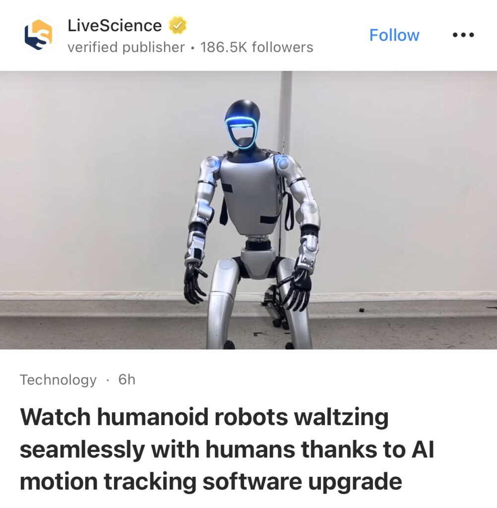 1。据LiveScience报道,借助人工智能运动跟踪软件升级,人形机器人可与人类无缝地跳华尔兹。“ExBody2”由加州大学圣地亚哥分校、加州大学伯克利分校、麻省理工学院和 Nvidia 的研究人员开发,是一项新技术,使人形机器人能够根据人类的详细扫描和运动跟踪可视化执行逼真的动作。