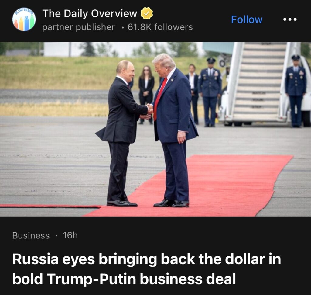 9。据The Daily Overview报道,俄罗斯试图通过特朗普与普京达成的商业协议来恢复美元地位,但这与美国制裁的硬性规定以及根深蒂固的全球储备货币体系相悖。任何此类举措都必须突破旨在阻止众多俄罗斯实体便捷使用美元清算的正式限制,而这些规定如今几乎影响着每一笔涉及美元的俄罗斯交易。