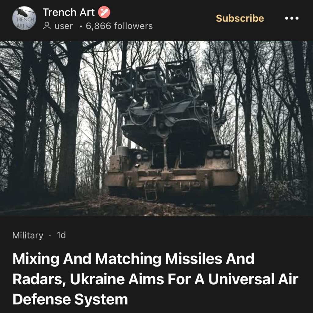 8。据Trench Art报道,乌克兰力求打造通用防空系统,将导弹和雷达进行混搭使用。