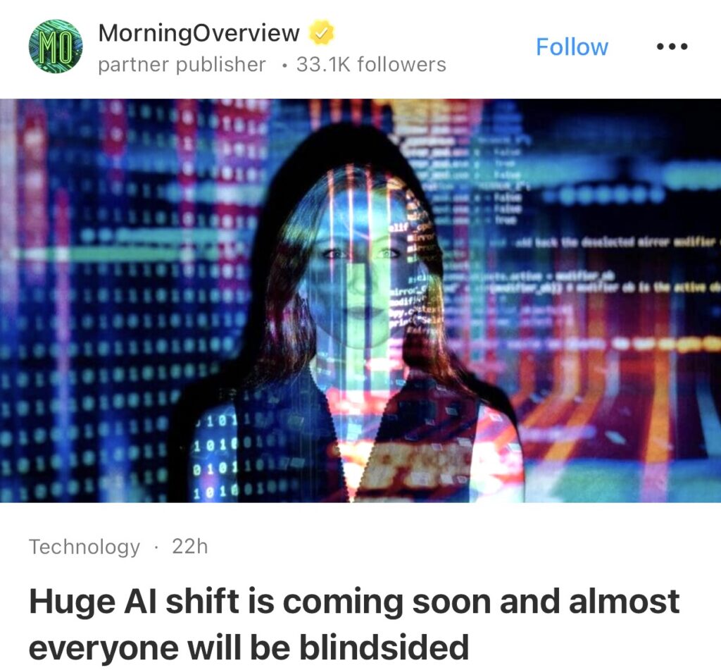 1。据MorningOverview报道,人工智能的巨大变革即将到来,几乎所有人都会措手不及。