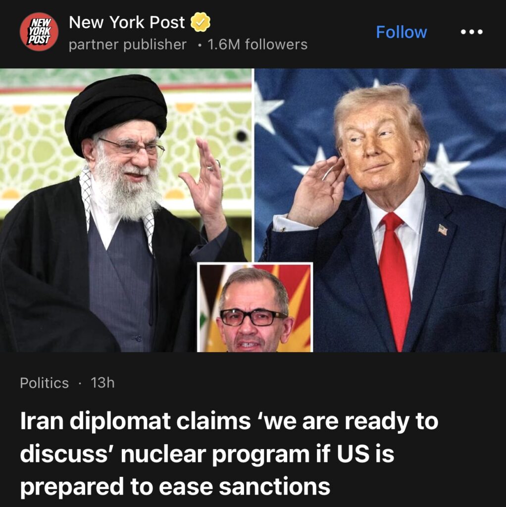 7。据New York Post报道,伊朗外交官声称,如果美国准备放松制裁,“我们愿意讨论”核计划。