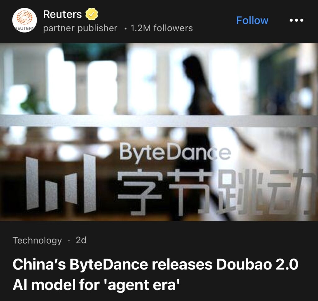 11。北京,2月14日(路透社)——中国字节跳动公司周六表示,该公司已推出豆包2.0版本,这是中国使用最广泛的人工智能应用程序的升级版。