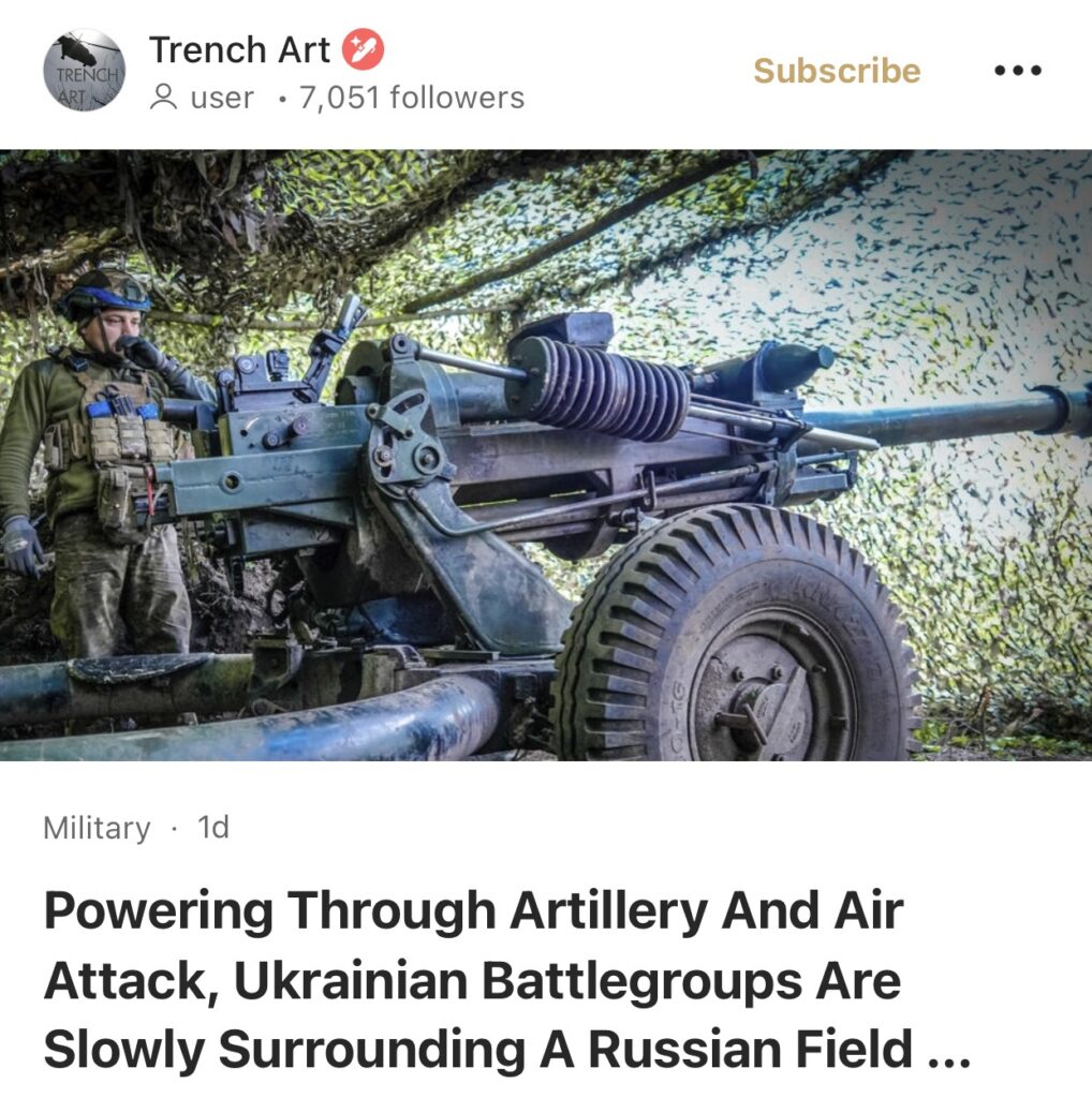 8。据Trench Art报道,乌克兰战斗群凭借炮火和空袭的强大火力,正在东南部逐步包围一支俄罗斯野战集团军。