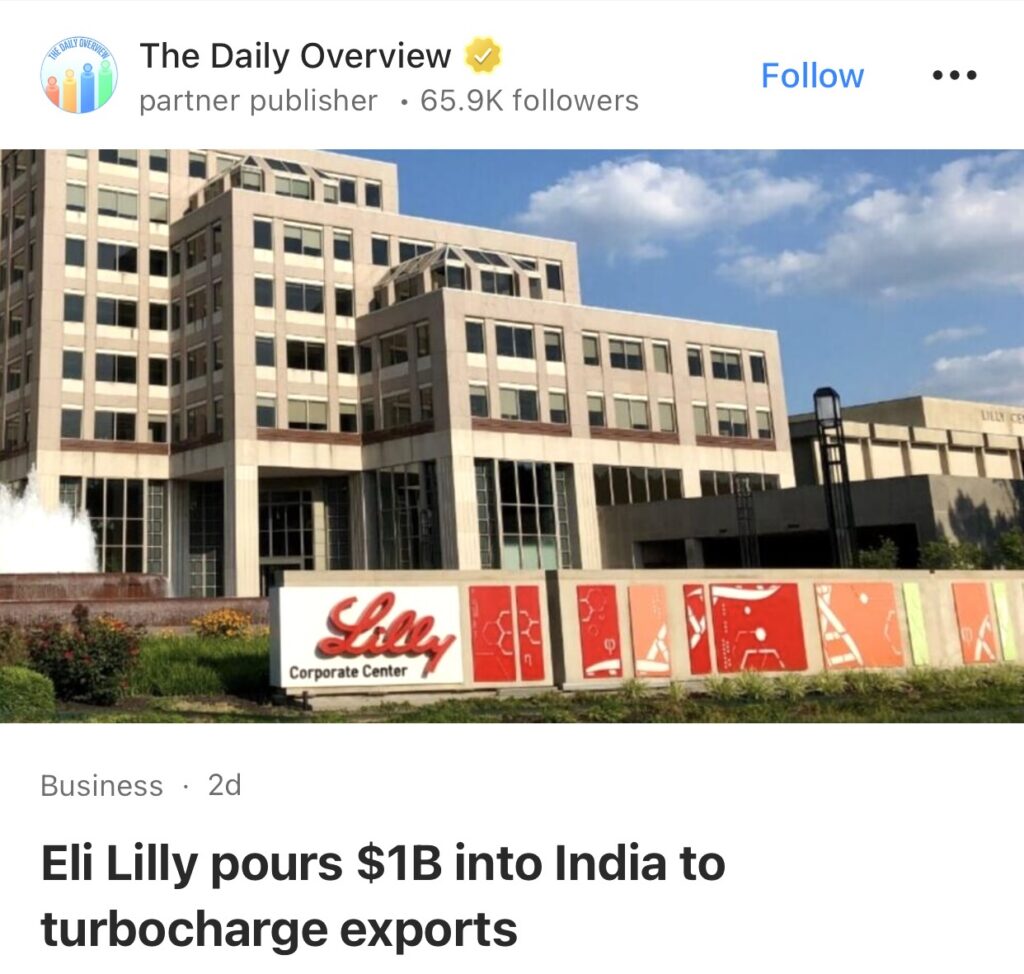 10。据The Daily Overview报道,礼来公司计划投资约10亿美元用于印度的药品生产,并将海得拉巴定位为该公司全球药品供应的潜在出口基地。此举表明,礼来公司不仅将印度视为其产品的市场,更将其视为满足全球需求的生产基地,以扩大其快速增长的糖尿病和肥胖症药物的生产能力。