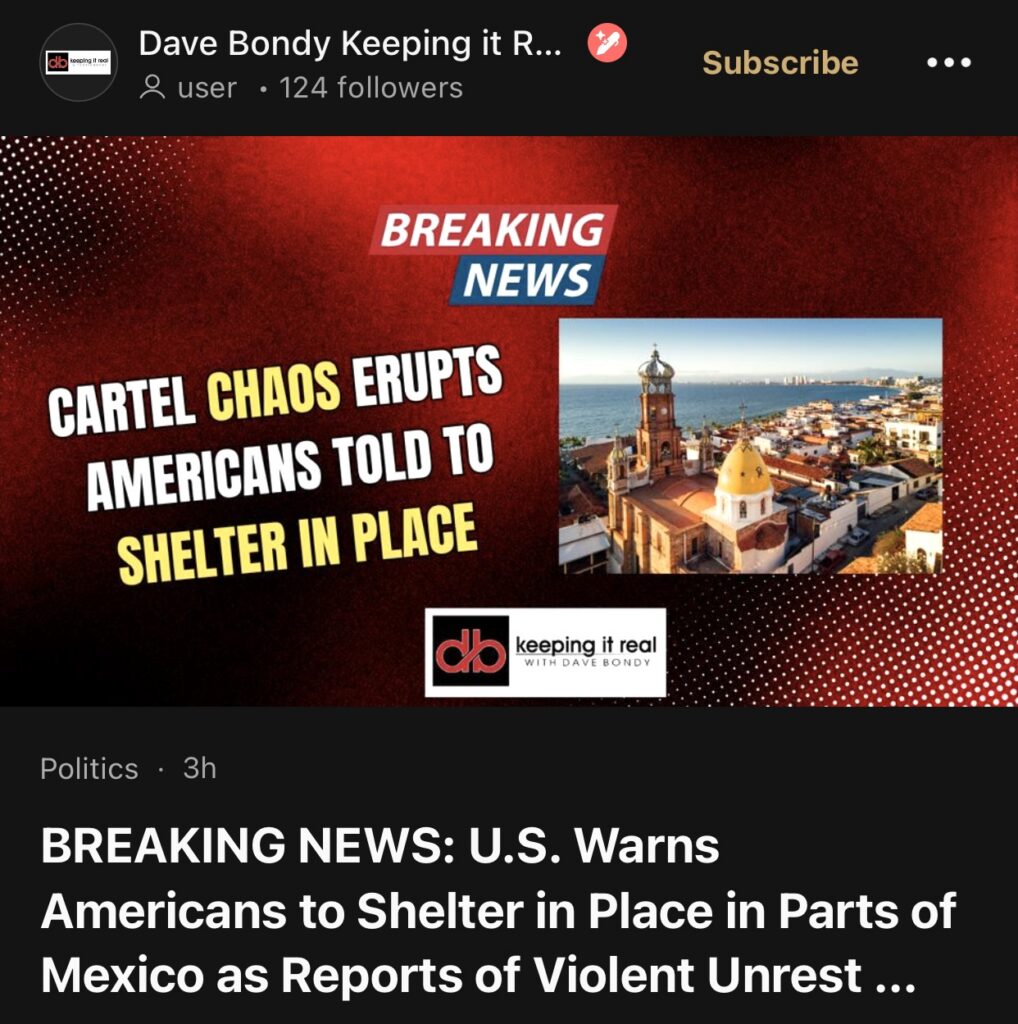 5。墨西哥巴亚尔塔港(美联社)——据官方公告,美国国务院警告美国公民,由于墨西哥多个地区出现安全行动、路障和犯罪活动,应就地避难。