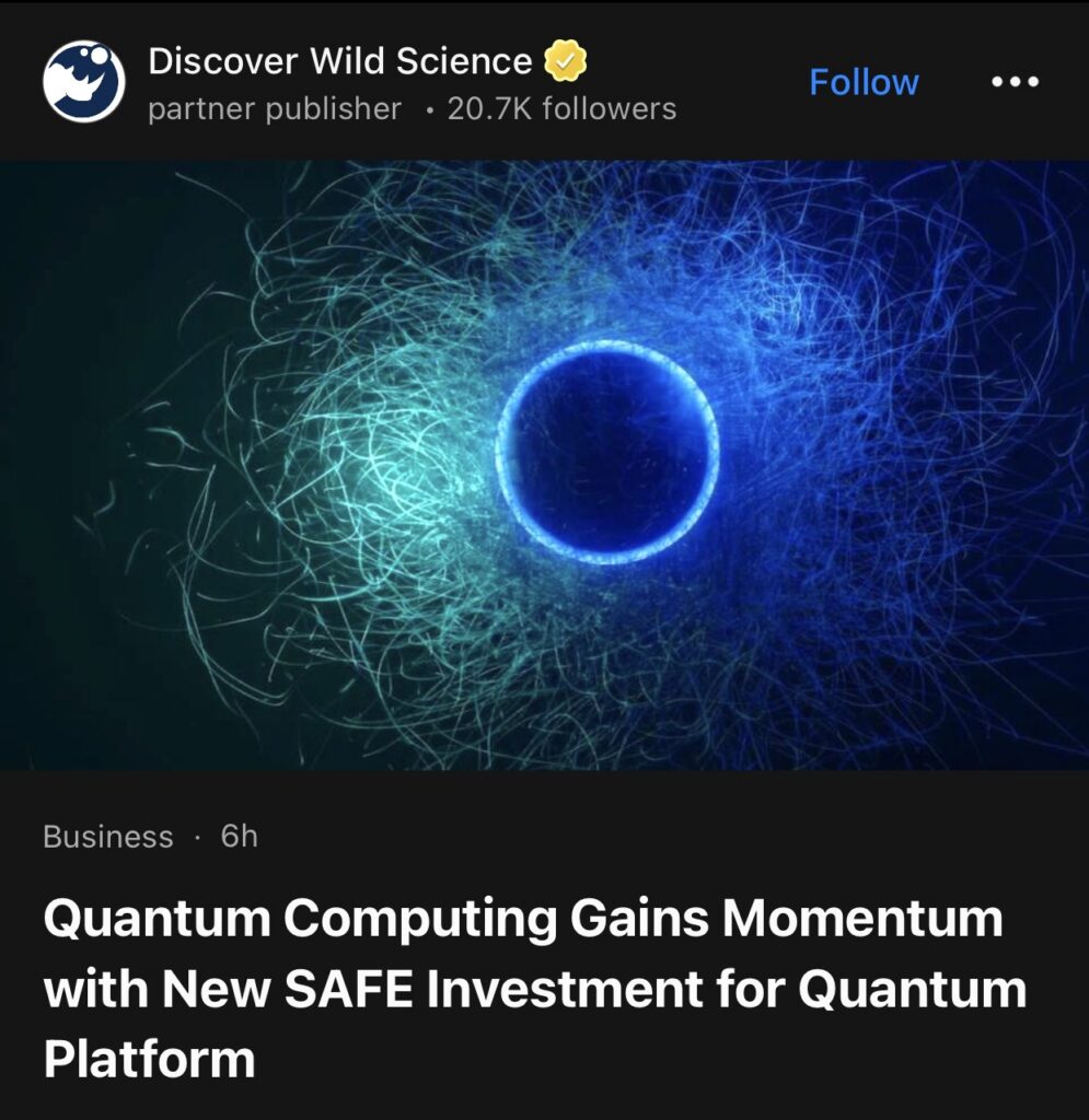 11。据Discover Wild Science报道,量子计算凭借SAFE对量子平台的新投资而获得发展动力。