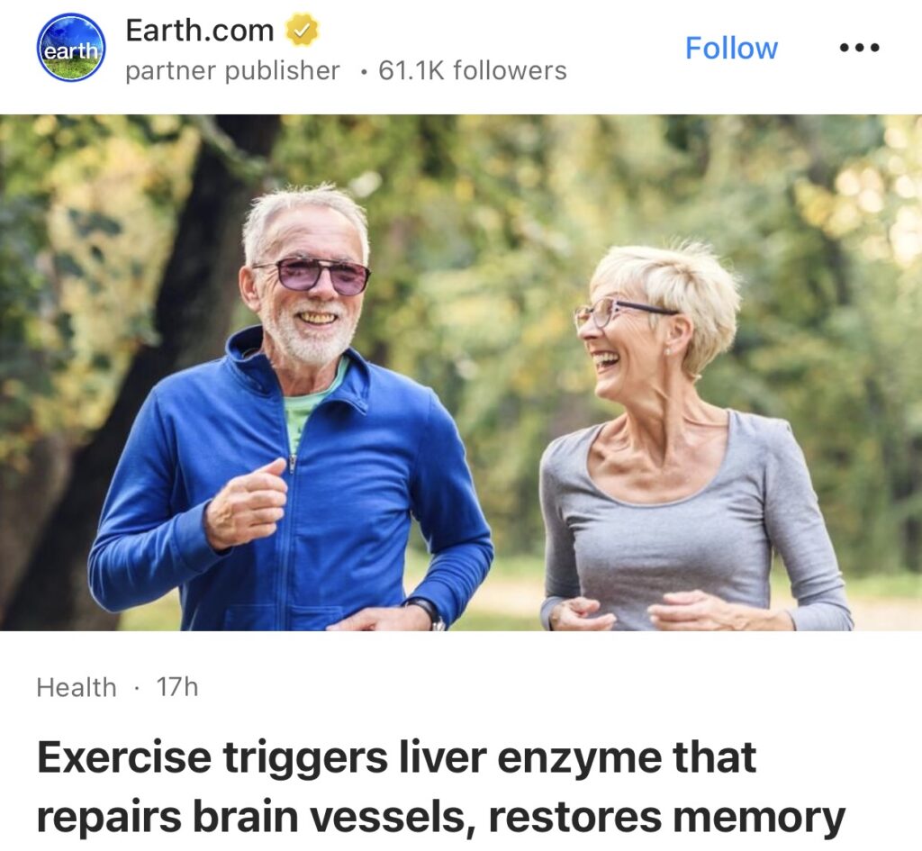 2。据Earth.com报道,运动会触发肝酶的分泌,这种酶可以修复脑血管,恢复记忆力。