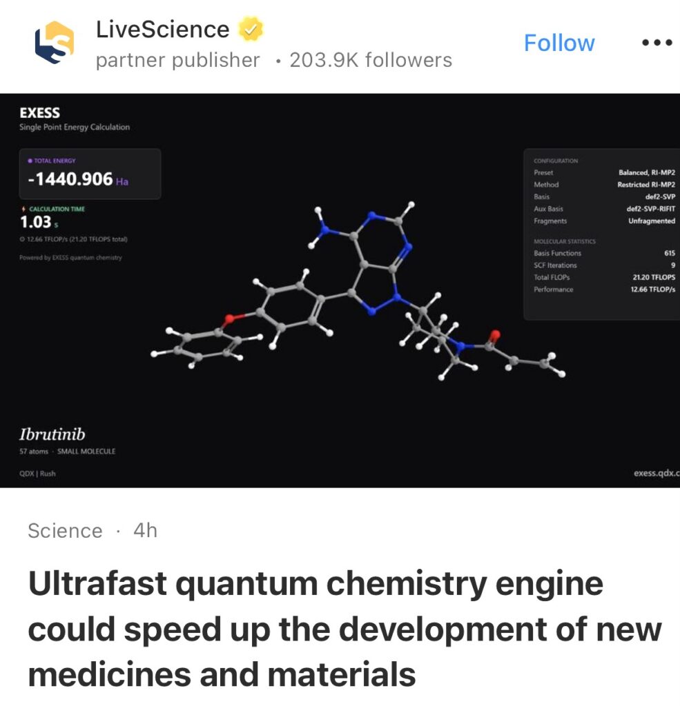 3。据LiveScience报道,超快量子化学引擎有望加速新药和新材料的研发。