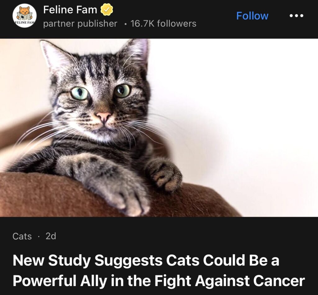 13。据Feline Fam报道,由兽医学、人类医学和基因组学领域的国际专家团队开展的一项突破性研究,首次绘制出猫科动物癌症的大规模基因图谱,揭示了猫可能掌握着解开多种人类癌症之谜的关键。该研究于2026年2月发表在《科学》杂志上,研究发现猫科动物癌症中的某些癌基因与其在人类中的对应基因存在关键的相似之处。
