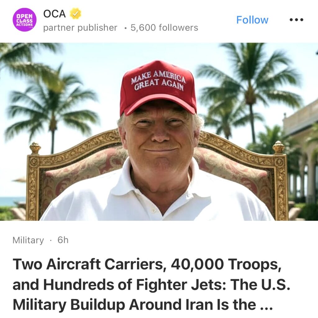 3。据OCA报道,两艘航空母舰、4万名士兵和数百架战斗机:美国在伊朗周边的军事集结是自2003年入侵伊拉克以来规模最大的一次。