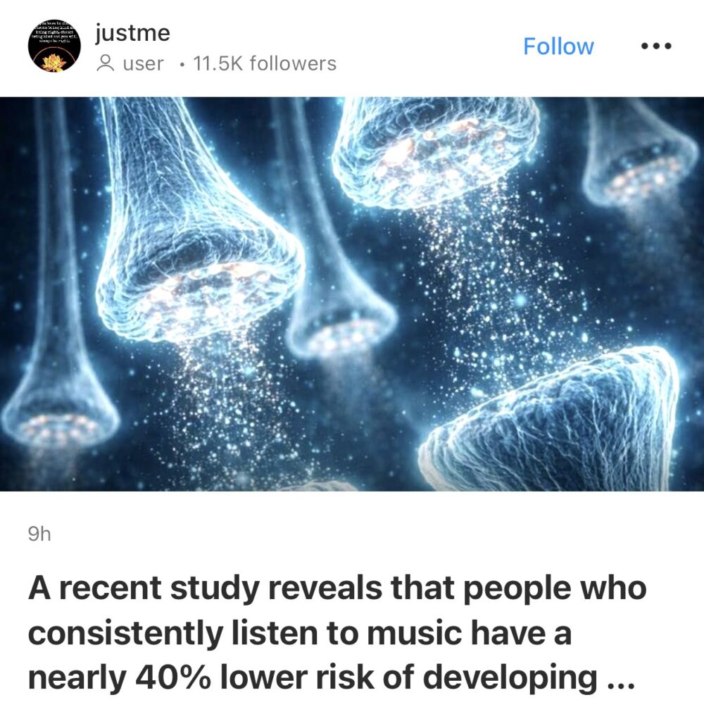 4。据Justme 报道,最近一项研究表明,经常听音乐的人患痴呆症的风险降低了近40%。音乐能够激活大脑的多个区域,刺激记忆力、注意力和情绪处理能力,这可能有助于保持神经网络的活跃和长期的稳定性。