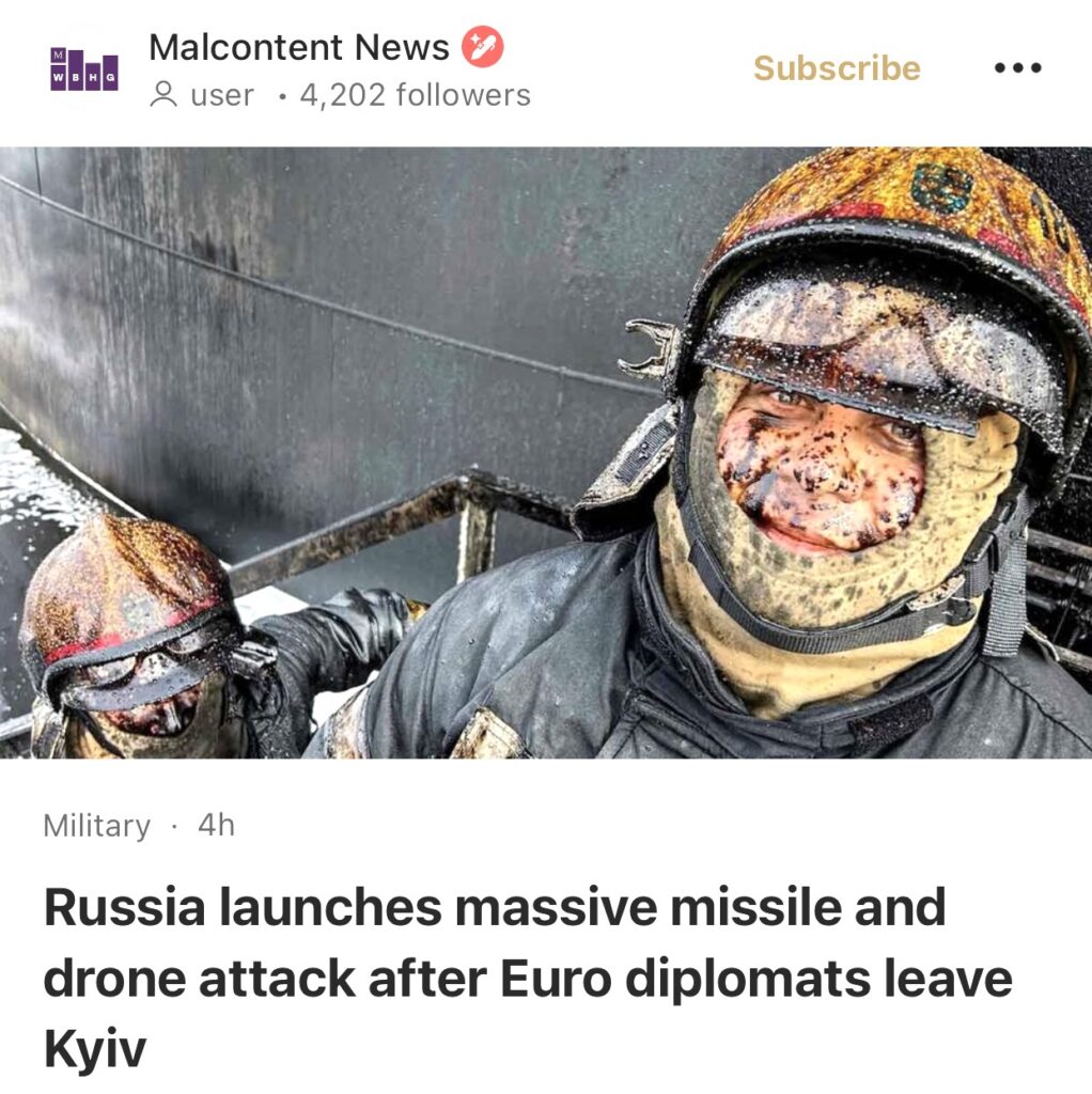 5。据Malcontent News报道,欧洲外交官离开基辅后,俄罗斯发动大规模导弹和无人机袭击。