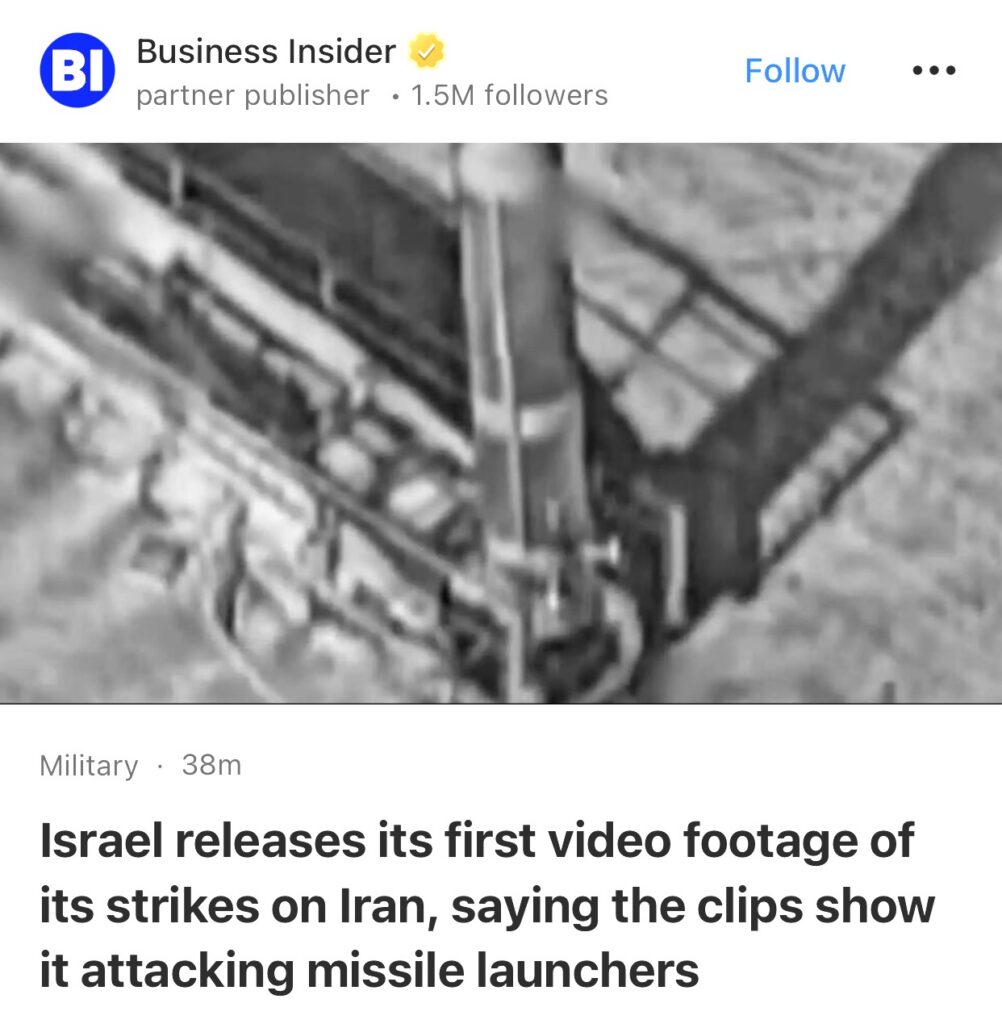 15。以色列公布了其对伊朗发动空袭的首段视频,称视频显示其正在攻击伊朗导弹发射阵地。