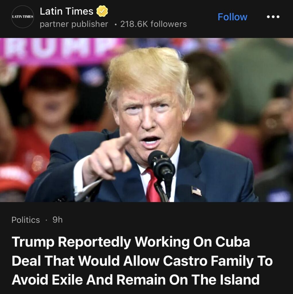 1。据报道,特朗普正在努力达成一项古巴协议,该协议将允许卡斯特罗家族避免流亡,并留在岛上。