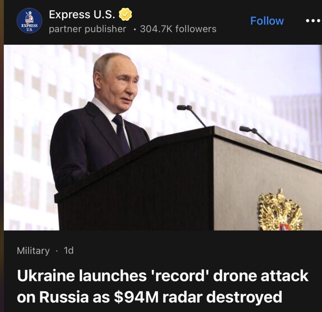 6。据Express U.S.报道,乌克兰对俄罗斯发动“创纪录”无人机袭击,价值9400万美元的雷达被摧毁。
