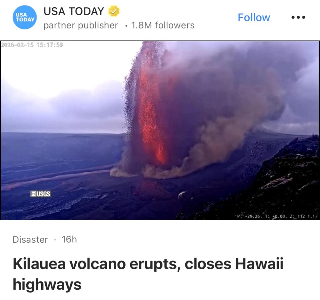 9。据USA TODAY报道,夏威夷岛的基拉韦厄火山于3 月 10 日开始喷发,喷出足球大小的岩石碎片,威胁到附近的社区,并导致附近的高速公路关闭。
