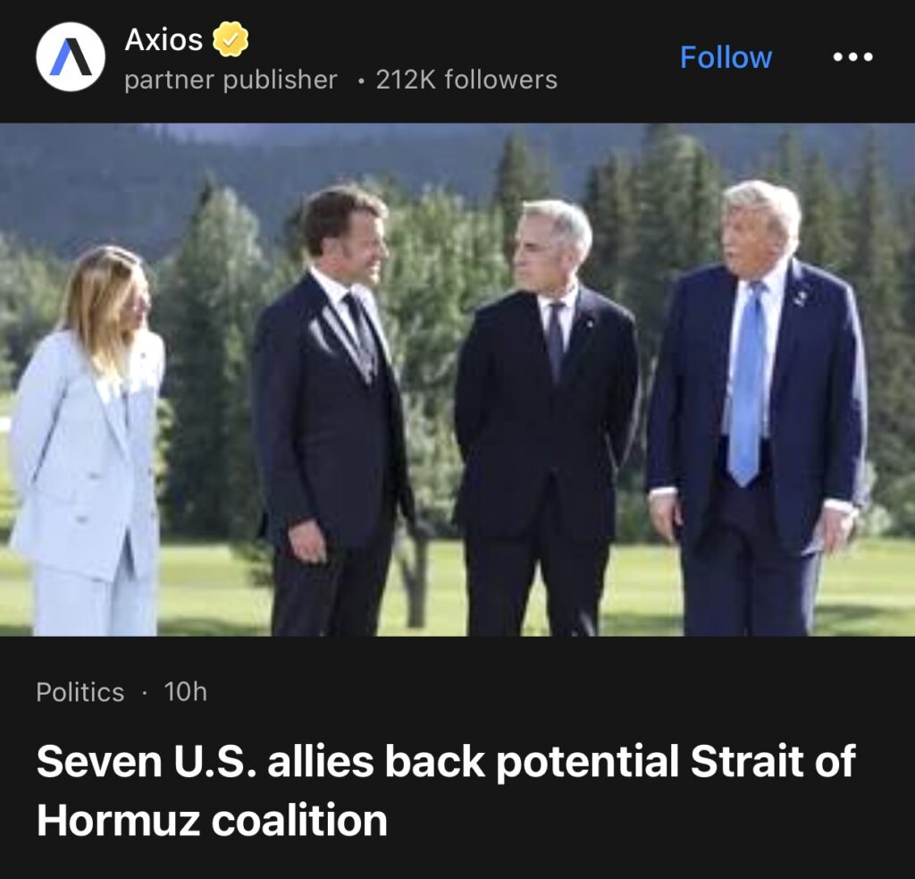 9。据Axios报道,七个美国盟友支持拟议中的霍尔木兹海峡联盟。
