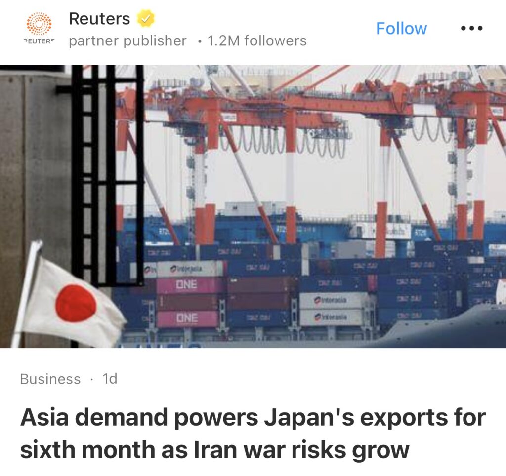 2。东京,3月18日(路透社)——周三公布的数据显示,日本出口已连续第六个月实现增长,这表明全球需求依然强劲;不过,由中东冲突引发的工业供应链中断隐患,正对这一全球第四大经济体构成潜在风险。