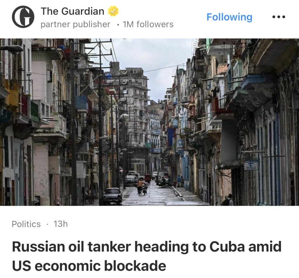 6。据The Guardian报道,在美国经济封锁下,一艘俄罗斯油轮正驶往古巴。