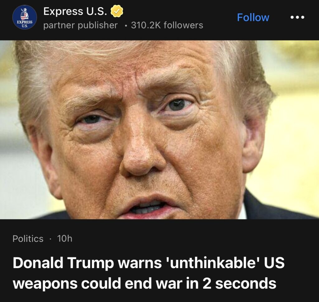 12。据Express U.S.报道,唐纳德·特朗普警告:美国“不可思议”的武器能在两秒钟内结束战争。