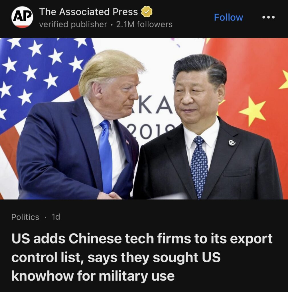 8。曼谷(美联社)——周三,美国将数十家公司列入出口管制名单,其中包括 50 多家总部位于中国的公司,称这些公司为军事目的寻求超级计算、人工智能和量子技术的先进技术,对此中国提出抗议。