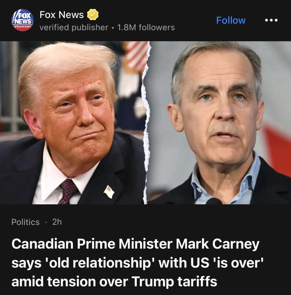 7。据Fox News报道,加拿大总理马克·卡尼表示,在特朗普关税紧张局势下,与美国的“旧关系”已经结束,并誓言就贸易协定重新进行谈判。