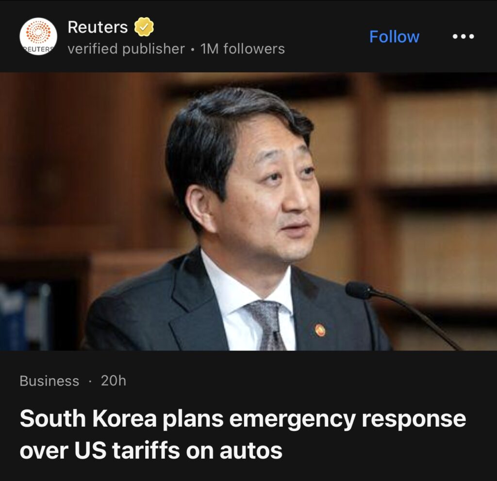 10。首尔(路透社)——韩国工业部长表示,美国总统唐纳德·特朗普宣布的对汽车征收美国进口关税生效后,韩国政府计划在 4 月前采取紧急应对措施,预计韩国汽车行业将面临“相当大的困难”。