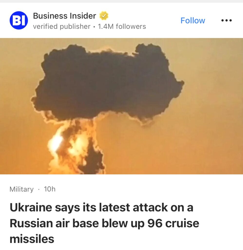 3。据Business Insider报道,乌克兰称其对俄罗斯空军基地的最新袭击引爆了 96 枚巡航导弹。