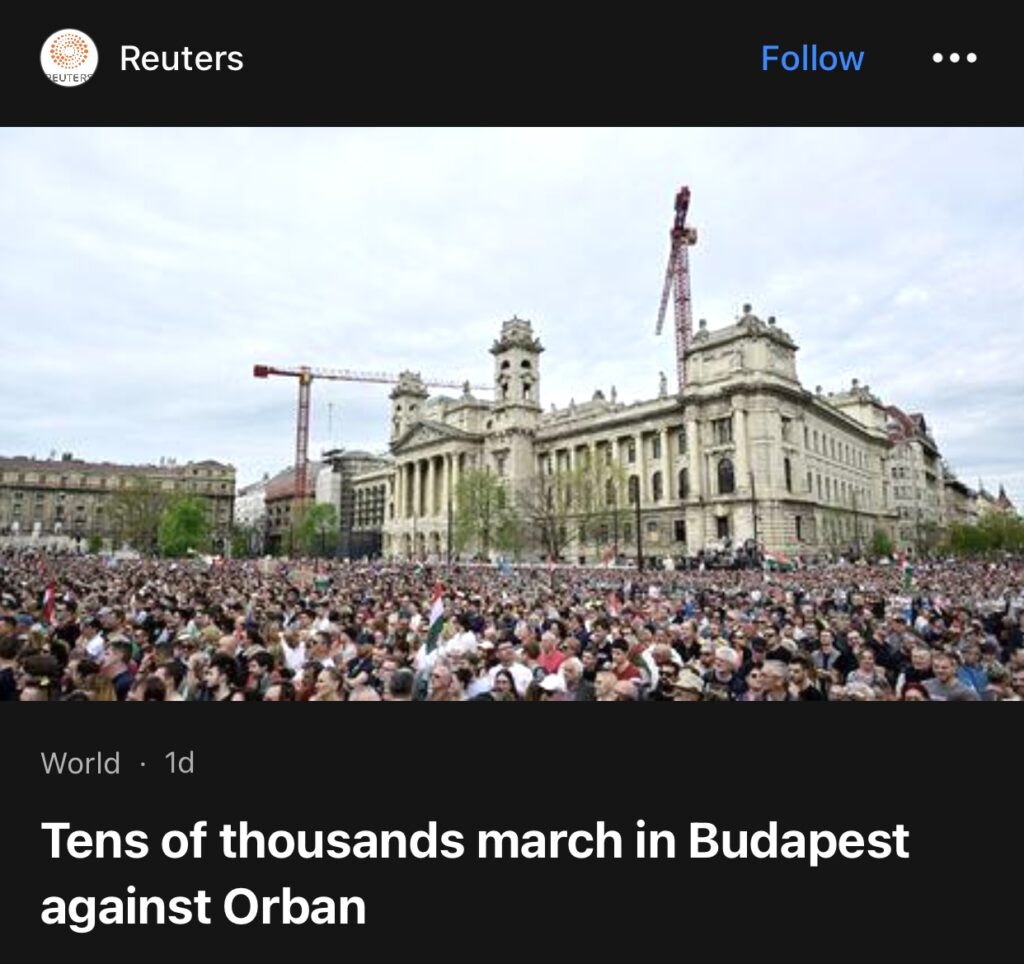 13。据布达佩斯路透社报道,周六,数万人在布达佩斯市中心抗议欧尔班·维克多政府。一位前与政府关系密切的律师领导并发起了一场旨在挑战总理的政治运动。