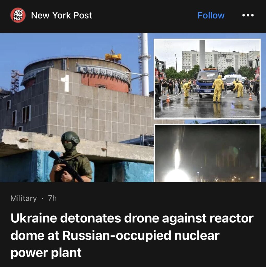 14。据New York Post报道,克里姆林宫和国际能源官员称,周日,乌克兰军队在乌克兰东南部俄罗斯占领的大型核电站的一座已关闭核反应堆的圆顶上引爆了一架无人机。