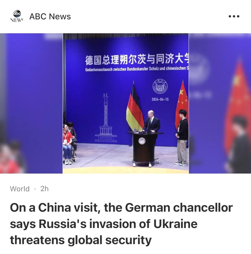 11。据ABCNews北京报道,周二,德国总理奥拉夫·肖尔茨向在北京接待他的中国领导人习近平表示,俄罗斯全面入侵乌克兰威胁到全球安全,显然是呼吁中国对其邻国和亲密战略伙伴施加更大压力,以解决冲突问题。