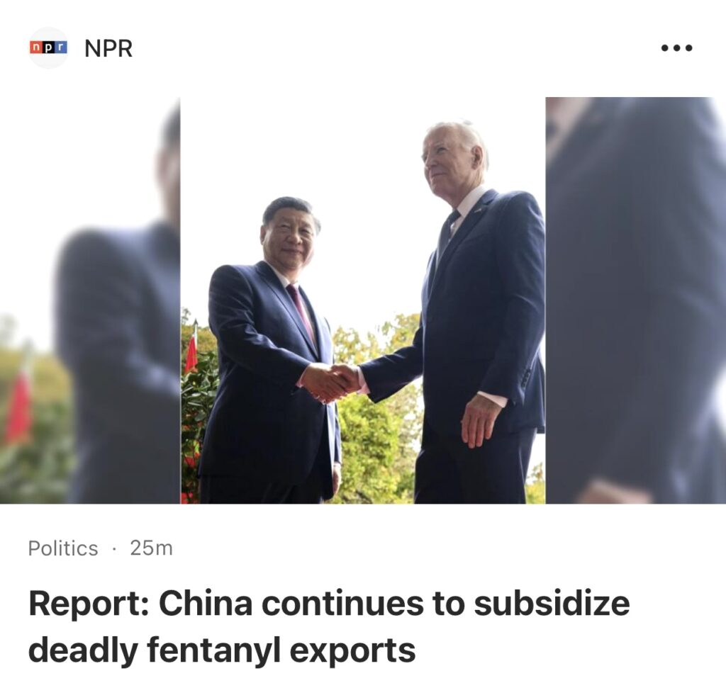 14。据NPR 报道,美国众议院委员会的调查人员,周二发布了一份报告,详细介绍了他们所说的中国政府继续“直接”补贴“非法芬太尼的制造和出口”的新证据。