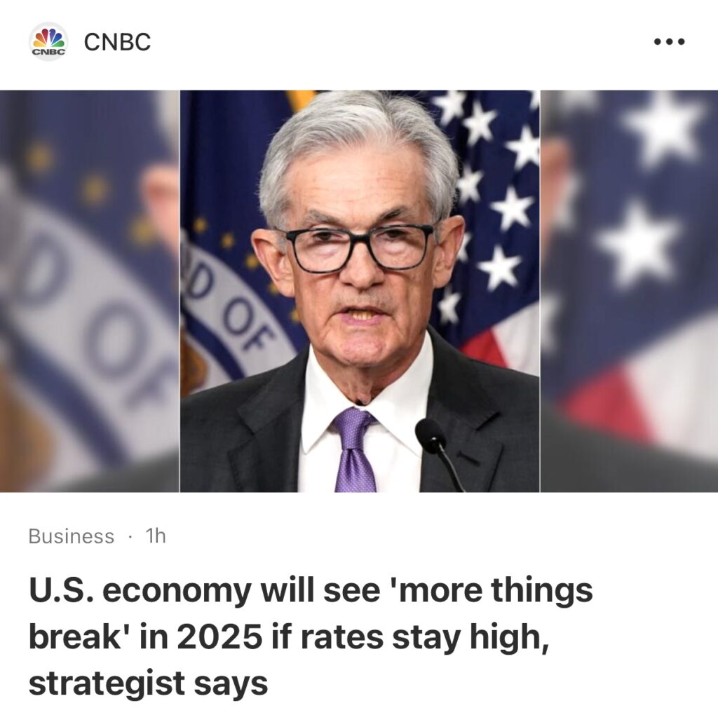 3。据CNBC 报道,道富银行欧洲、中东和非洲地区投资策略主管周二表示,如果美联储不尽快采取利率行动,美国经济可能会在 2025 年陷入暴风雨。阿尔塔夫·卡萨姆 (Altaf Kassam) 告诉 CNBC,经典的货币政策机制已经“崩溃”,这意味着美联储做出的任何改变现在都需要更长的时间才能渗透到实体经济中。