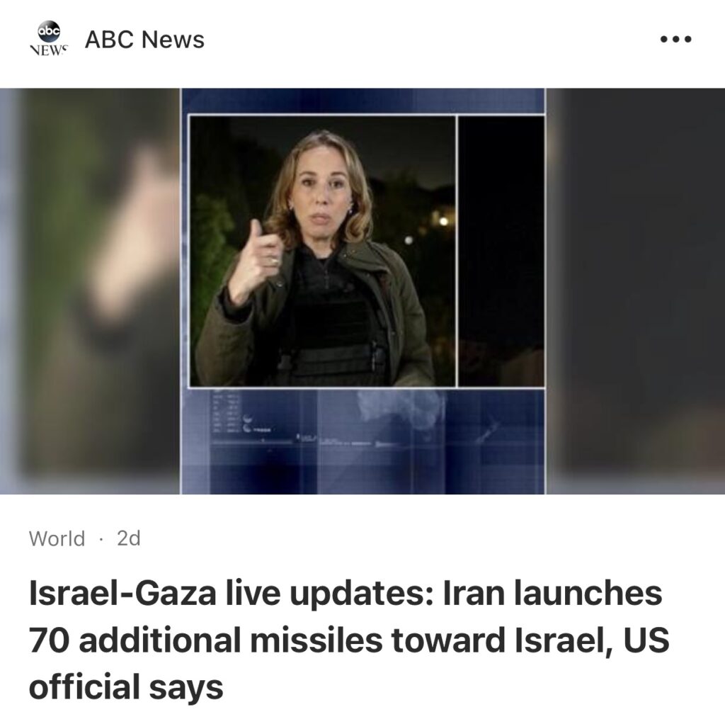 1。据ABCNews 报道,美国官员称,伊朗再向以色列发射了 70 枚导弹。伊朗官员称,如果以色列反击,伊朗将在“几秒钟”内做出回应。以色列军事长官称,伊朗的袭击“将得到回应”。