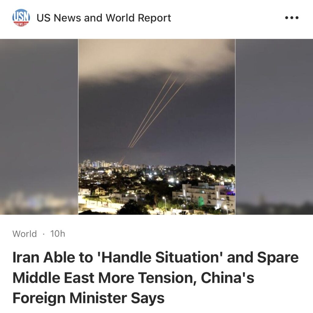 8。据北京路透社报道,中国表示相信伊朗能够“处理好局势,避免该地区进一步动荡”,同时维护其主权和尊严,指的是伊朗驻叙利亚大使馆遭受袭击以及周末的报复性袭击。