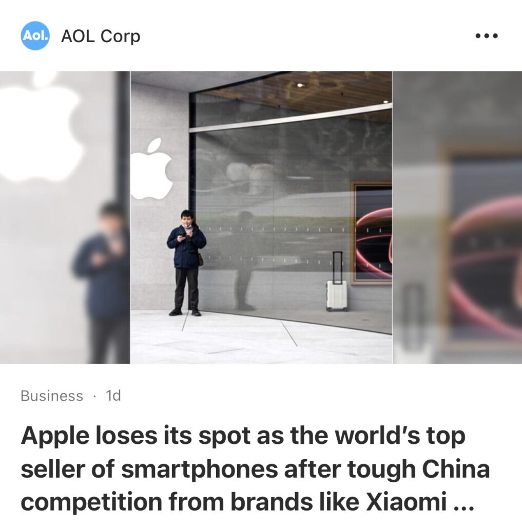 2。据AOL报道,在与小米和华为等品牌在中国的激烈竞争后,苹果失去了全球最大智能手机销售商的地位。研究公司 IDC 的报告显示,2024 年第一季度苹果iPhone 出货量为 5010 万部,同比下降 9.6%。