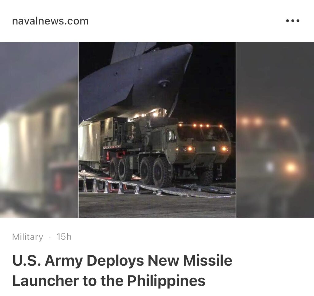 10。据NavalNews报道,4 月 8 日,第 1 多域特遣部队远程火力营第 3 野战炮兵团第 5 营查理炮台的中程能力 (MRC) 发射器抵达菲律宾吕宋岛北部战区,这是该能力首次部署到菲律宾吕宋岛北部战区的一部分。