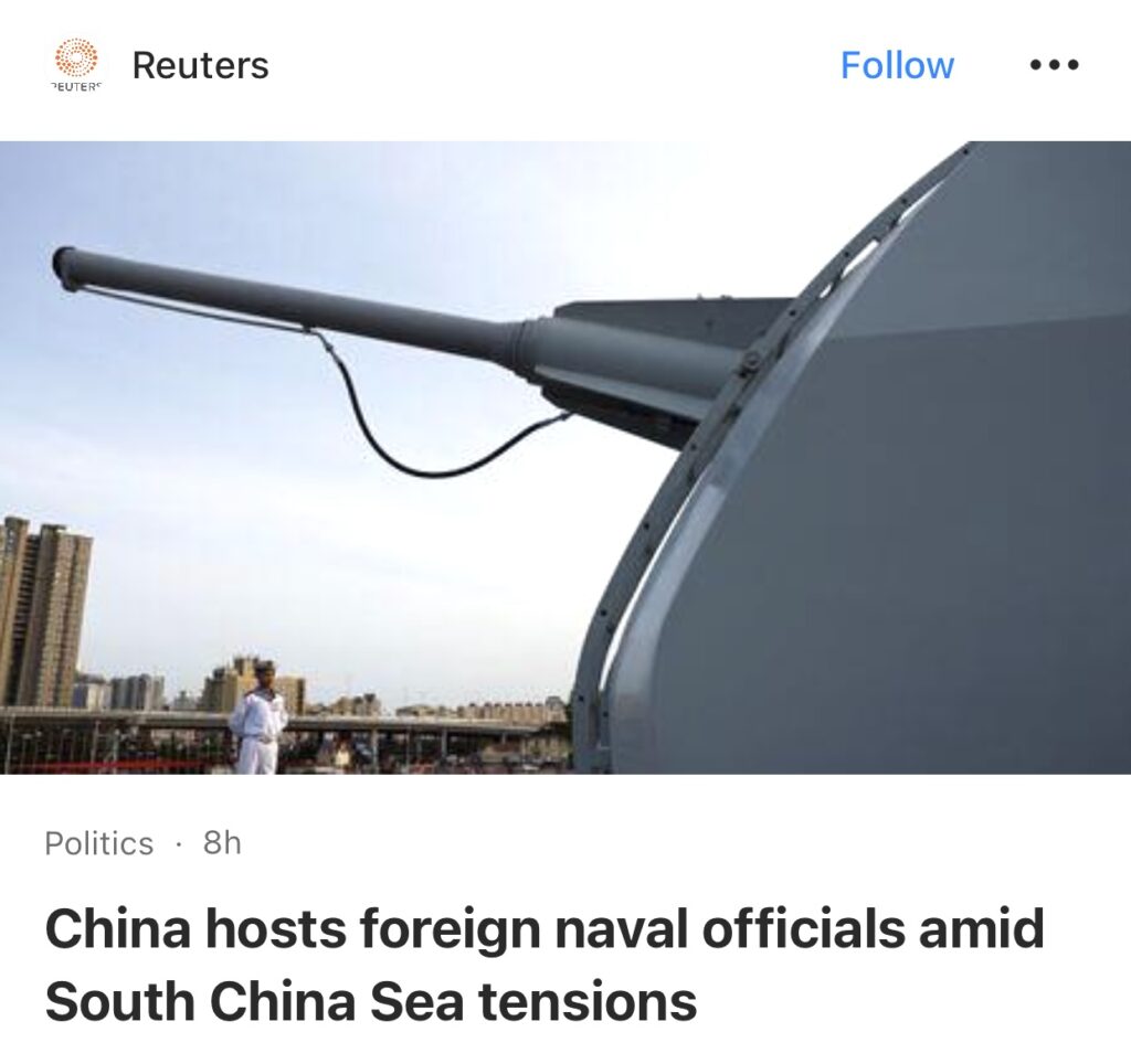 9。据中国青岛路透社报道,周日,中国海军在港口城市青岛拉开了两年一度的外国海军高级官员会议的序幕,这是一场军事外交秀,人们将密切关注中美之间更多接触的迹象。