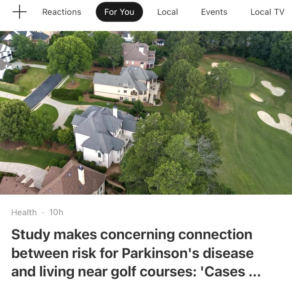 9。据The Cool Down报道,研究显示帕金森病风险与居住在高尔夫球场附近存在关联:“病例激增”。
