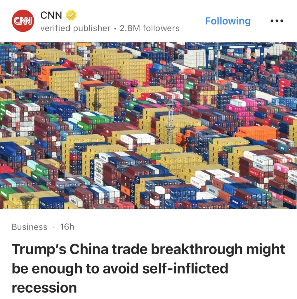 14。据CNN 报道,特朗普在中国贸易上的突破或许足以避免自身造成的经济衰退。