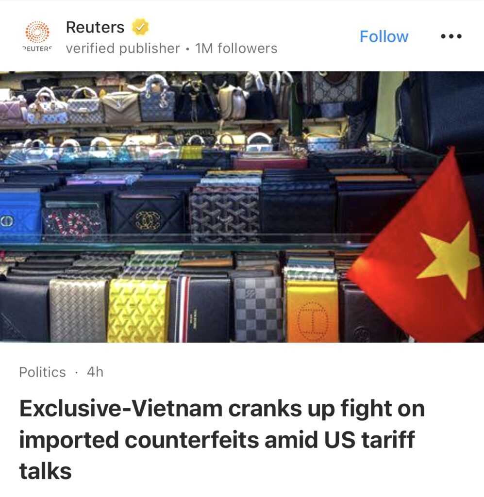 6。据Reuters独家报道,越南在美国关税谈判中加大打击进口假冒产品力度。